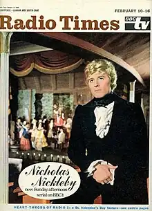 Nicholas Nickleby is a British television series which first aired on BBC 1 in 1968.[1][2] It is based on the novel Nicholas Nickleby by Charles Dickens, following a compassionate young man who, after the death of his father, tries to save his friends and family from his wicked uncle, and earn a living strong enough to support them.[3]