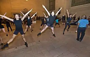 In 2013 Nick Cave worked with the dancers of the Alvin Ailey Dance Company, which he was formerly a dancer in, and created HEARD•NY. This performance took place in one of the city's most bustling thoroughfares, Grand Central Terminal's Vanderbilt Hall. HEARD•NY was not a purely visual spectacle, but a layered commentary on ceremony (particularly, costumed West African ritual), identity, and the place of dreams in civic life.[22] A herd of thirty colorful life-size horses broke into choreographed movement—or “crossings”— twice a day for just a week and was accompanied by live music. Each suit, made of brightly-colored synthetic raffia, was operated by two dancers from the Alvin Ailey Dance Company. The project was presented by Creative Time and MTA Arts for Transit as part of a series of events celebrating the centennial of Grand Central. Nick Cave's soundsuits were created to be seen in motion. Choreographed performances such as these show the audience what the soundsuits look and sound like in their true form.[23]