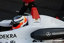Nicolas Hülkenberg (German pronunciation: [ˈniːko ˈhʏlkənbɛɐ̯k], born 19 August 1987) is a German professional racing driver who is currently competing in the Formula One World Championship for Haas F1 Team. This comes after serving as a reserve driver for Aston Martin F1 Team for the year of 2022. In 2015, he also contested two rounds of the 2015 FIA World Endurance Championship season for Porsche, winning the 24 Hours of Le Mans on his first attempt. He was the 2009 GP2 Series champion, and is a previous champion of both the Formula 3 Euro Series and A1 Grand Prix, as part of A1 Team Germany. He is one of six drivers since 2005 to win the GP2 Series/Formula 2 championship in his debut season, the others being Lewis Hamilton, Nico Rosberg, Charles Leclerc, George Russell, and Oscar Piastri. As of April 2023, Hülkenberg holds the record for the most Formula One career starts without a podium finish, a record he broke when he failed to finish in his 129th race (the 2017 Singapore Grand Prix) and in so doing passed Adrian Sutil's previous record of 128; Hülkenberg's record stands at 186 Grands Prix.[2][3] As of July 2022 he also holds the record for most career points without a single race win, the record was attributed after the previous holder, Carlos Sainz Jr. won the 2022 British Grand Prix.[4]