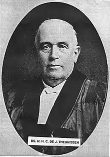 From 1916 until his death in 1929, Theunissen was a minister in the Transvaal town of Greylingstad.[5]