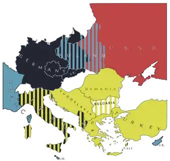 From his posting, Petrescu-Comnen witnessed the revelations of a German–Soviet Pact, which, as he reported to Gafencu, placed Romania in imminent danger.[144] He remained in Rome after the outbreak of World War II a week later. The German invasion of Poland convinced Comnen that there was "no reasoning to be tried with the Germans"—a pessimistic note which contrasted Gafencu's attempts to reach a new understanding with the Axis.[145] According to his own recollections, he was entrusted by Gafencu and Şükrü Saracoğlu with obtaining Italian backing for the Balkan Pact, which was to include a pacified Bulgaria; at the time, Italy was still "non-belligerent".[146] Although Mussolini eventually backed Hitler, Comen still hoped to obtain Italian and papal support for Romania before and during the Second Vienna Award.[147] By April 1940, he was allegedly contacted by Myron Charles Taylor, and through him informed US foreign policy.[148]