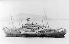 By 06:00 Bruun concluded that it was taking too long for Roda to start her engines, and decided to sink the German ship. Although still not certain about which warring party was attacking Norway, and out of contact with his superiors and other military units, Bruun wanted to end the situation and free up his ship for other tasks.[37] After Bruun had recalled his prize crew and ordered the German crew to abandon ship in their lifeboats, he ordered his gunners to sink the German vessel. Æger first fired 25 "cold" 10 cm rounds (non-explosive shells intended for use as warning shots rather than warfare) into Roda's starboard side, then a further 25 cold rounds into the German ship's port side.[37][38] Before Roda's captain abandoned ship, he radioed a message describing the situation. Picked up by another German ship in the area, Tübingen, the message had been relayed to the invasion headquarters in Hamburg, Germany.[39] The crew of Æger was stunned by Bruun's order to open fire, which he had to repeat three times before they carried it out.[39] By 08:00 Roda was sinking slowly,[40] finally disappearing beneath the surface by the afternoon of 9 April and settling at a depth of 50 metres (160 ft).[37]