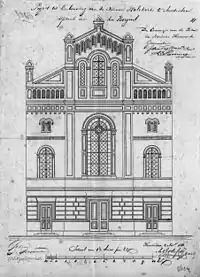 In 1841, the Huguenots purchased a building at Keizersgracht 676. The house, which dated to 1671 and was designed by Adriaan Dortsman, was to be demolished and replaced with a new church building. Construction of the church did not begin until 1854, however. In 1856, the first church services were held in this Nieuwe Waalse Kerk. [2][3]