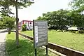Aerial view of the secondary entrance showing the car park and security post