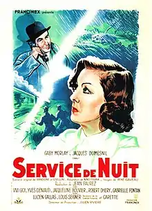 Night Shift (French: Service de Nuit, Italian: Turno di notte) is a 1944 French-Italian comedy film directed by Jean Faurez and starring Gaby Morlay, Jacques Dumesnil and Vivi Gioi.[1][2] The film's sets were designed by the art director René Moulaert.