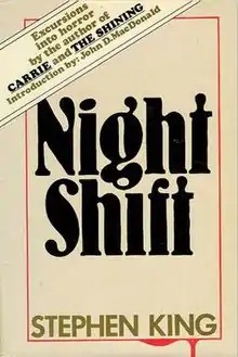 Night Shift is Stephen King's first collection of short stories,[1] first published in 1978. In 1980, Night Shift won the Balrog Award for Best Collection, and in 1979 it was nominated as best collection for the Locus Award and the World Fantasy Award.[2]