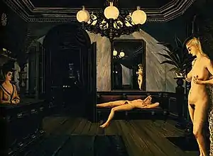 Night Train (Le train de nuit) is a 1947 painting by Belgian artist Paul Delvaux, famous for his paintings of female nudes. The painting is 153 x 210 centimetres and is now in the Museum of Modern Art, in Toyama, in Japan.[1][2]