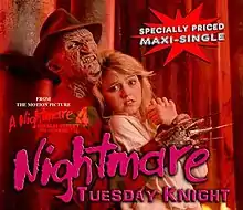 "Nightmare", also known as "(Running From This) Nightmare", is a song by American recording artist and actress Tuesday Knight. The song serves as the opening song for the fourth installment of the Nightmare on Elm Street franchise, A Nightmare on Elm Street 4: The Dream Master, in which Knight co-starred. Although not officially released as a single or included on the original soundtrack for the film at the time, "Nightmare" has become a cult hit among horror fans and is one of Knight's most well-known and signature songs. It was released officially as a single in 2015.