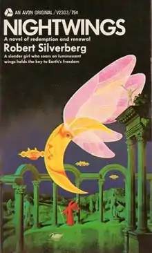"Nightwings" is a science fiction novella by American writer Robert Silverberg. It won the Hugo Award for Best Novella in 1969 and was also nominated for the Nebula Award in 1968. It won the Prix Apollo Award in 1976. "Nightwings" is the first in a trilogy of novellas, the next two being "Perris Way" (1968) and "To Jorslem" (1969). These three works were later collected into a single fixup in three sections, also titled Nightwings. According to Silverberg's introductions, the changes required to turn the three shorter works into a novel were relatively minor.
