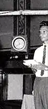 ![]() Radio Ceylon announcer Nihal Bhareti in a studio in the 1960s | |