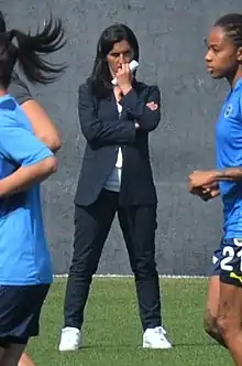 From 2008 on, she worked at the Turkish Football Federation.[5] She served as trainer of the Turkey U15, Turkey U17, Turkey U19 and the Turkey national teans between 2006 and 2014.[1] She served as assistant trainer of the Turkey U17 (2010), Yutkey U19 (2019–2010) and the Turkey <(2011), as well as trainer of the Turkey U15 (2009–2010) and the Turkey (2008–2010, 2012).[3][4][6][7] She managed the Turkey women's national deaf football team at the 2017 Summer Deaflympics held in Samsun, Turkey.[5] In 2011, she became manager of the Turkey team.[8]
