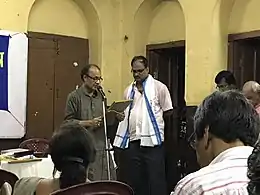 Nikhil Bharat Banga Sahitya Sammelan (in Bangla: নিখিল ভারত বঙ্গ সাহিত্য সম্মেলন; All India Bengali Literary Conference) is an annual convention of Bengali literary personages of India, held annually. The first annual conference (then, Prabasi Banga-Sahitya Sammelan)(প্রবাসী বঙ্গ-সাহিত্য সম্মেলন) was held in Banaras at Central Hindu Boys School in 1923[1] and was presided over by Rabindranath Tagore. People interested in knowing about the details of it conference can get the details from a widely acclaimed book named,'সভাপতির অভিভাষণ: প্রবাসী বঙ্গ সাহিত্য সম্মেলন'written by Dr Amarnath Karan(lalmati Prakasani).
