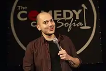![]() Nikolaos Tsitiridis on the stage of Comedy Club Sofia, 2018 | |