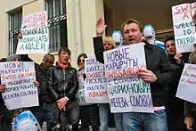 During several years Nikolay Alexeyev and his fellow activists campaigned for the repeal of the ban on blood donations by homosexual men which was imposed in the regulations of the Russian Health Ministry. On 14 September 2007 gay activists organized an unsanctioned picketing of the Ministry building against the ban.[97] The gathering was dispersed by police forces.[98] The same day Nikolay Alexeyev and a few other activists attempted to donate their blood in Moscow's Central blood transfusion centre but they were turned away.[99] The result of this campaign came in spring 2008 when the Health Ministry amended its regulations and repealed the ban. It was the first legislative change in favor of homosexual people in Russia since the repeal of criminal prosecution for male homosexual conduct in 1993.[100]