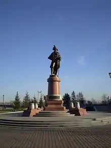 He died of fever and exhaustion in Krasny Yar (now Krasnoyarsk), Siberia, on March 8, 1807.[16] His grave was destroyed by Bolsheviks, but his remains were reburied. On October 28, 2000, at Rezanov's grave in the Trinity churchyard of Krasnoyarsk (where according to one account his remains were moved in the late 1950s) there was a service for the dead and the dedication of a memorial to Rezanov. Poets had taken up the story of Rezanov and Conchita, turning it into a famous romance in Russia. The memorial has a white cross, bearing on one side the inscription “Nikolai Petrovich Rezanov 1764 — 1807. I will never forget you”, and on the other side — “Maria Concepcion de Arguelio 1791 — 1857. I will see you never more”.