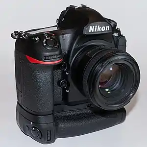 ![]() A Nikon D850 camera with attached optional MB-D18 battery grip | |