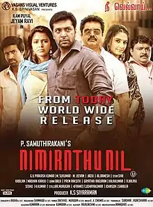 Nimirndhu Nil (transl. Stand upright) is a 2014 Indian Tamil-language action drama film written and directed by Samuthirakani featuring Jayam Ravi and Amala Paul.[1] It was produced by KS Sreenivasan's Vaasan Visual Ventures.[2] The film's soundtrack and background score were composed by G. V. Prakash Kumar.[3] Ravi played a revolutionist for a social cause.[4] The film, which was simultaneously made in Telugu as Janda Pai Kapiraju with Nani in place of Jayam Ravi, released on 8 March 2014 and received mostly positive reviews.[5]