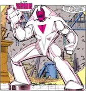 When Nimrod comes across a piece of the gigantic Sentinel Master Mold while working on a construction site, his programming is immediately co-opted; Master Mold merges with Nimrod, using its systems to rebuild Nimrod in its own image. The X-Men are initially hard pressed to defeat the reborn Master Mold, but Nimrod comes to their aid, claiming he has evolved as well and no longer views them or mutants as a threat. Nimrod asserts enough control over Master Mold to render it immobile, and even convinces it that it has become a mutant as well. Thus, to fulfill its prime directive to exterminate mutants, it must self-destruct. The remains of both robots are pushed through the Siege Perilous, a mystical gateway that causes all who passed through it to be reborn with new bodies.[6] Though the exact moment is unclear, Nimrod and Master Mold are merged into the being Bastion, a man who had absolutely no memory of his former existence.[7]