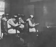 In 1912 she became the first president of the Nurses Association of China, and after a two-year term went on to be chairman of its education committee. She played a leading role in establishing a school of nursing at the missionary-founded Hsiang-Ya (Xiangya) Hospital[2] and by 1919 was Dean of the school.[4] She wrote several articles about her experiences for readers of the American Journal of Nursing, sometimes illustrating them with photographs.