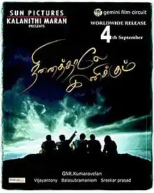 Ninaithale Inikkum (transl. Sweet Memories) is a 2009 Indian Tamil-language drama film directed by G. N. R. Kumaravelan. It is a remake of the 2006 Malayalam film Classmates. Prithviraj reprises his role from the original film, the film co-starred Shakthi Vasu, Priyamani, Karthik Kumar, Anuja Iyer, Vishnu Priyan, K. Bhagyaraj and Manobala. The soundtrack was composed by Vijay Antony.