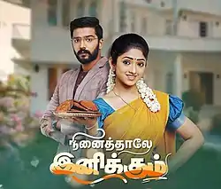 Ninaithale Inikkum (transl. It's sweet, when we think) is an Indian Tamil-language television drama airing on Zee Tamil and streams on ZEE5. The series has been produced by Monk Studios and directed by N. Priyan.[1] It premiered on 23 August 2021 and starring Swathi Sharma and Anand Selvan.[2] The series is an official remake of Zee Bangla TV series Mithai.