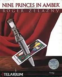 Nine Princes in Amber is an interactive fiction video game with graphics. The game was published by Telarium, a subsidiary of Spinnaker Software, in 1985. The game is based upon the fantasy novels Nine Princes in Amber and The Guns of Avalon by Roger Zelazny.