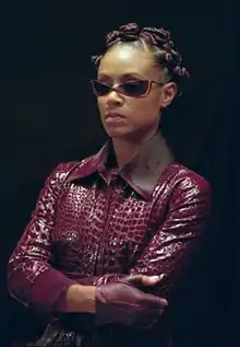 Niobe is a fictional character in The Matrix franchise. She is portrayed by Jada Pinkett Smith. She serves as a supporting character in the three sequels of the original film, The Matrix Reloaded, The Matrix Revolutions and The Matrix Resurrections, and one of the protagonists of the video game Enter the Matrix. Niobe also appears in the MMORPG The Matrix Online. In the game, however, Niobe's character voicing is portrayed by Gina Torres, who portrayed the minor Zion character Cas in The Matrix Reloaded and The Matrix Revolutions.[1][2]
