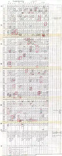 The key first experiments were done with poly-U (synthetic RNA composed only of uridine bases, provided by Leon Heppel and Maxine Singer[8]). At 3 am on May 27, 1961, Matthaei used phenylalanine as the "hot" amino acid. After an hour, the control tube (no poly-U) showed a background level of 70 counts, whereas the tube with poly-U added showed 38,000 counts per milligram of protein.[9][8] Subsequent experiments showed that the 19 "cold" amino acids were not necessary and that the protein product had the biochemical characteristics of polyphenylalanine,[8] [10] demonstrating that a chain of repeated uracil bases produced a protein chain made solely of the repeating amino acid phenylalanine. While the experiment did not determine the number of bases per codon, it was consistent with the triplet codon UUU coding for phenylalanine.
