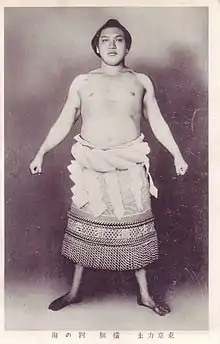 Nishinoumi Kajirō III (Japanese: 西ノ海 嘉治郎, November 2, 1890 – July 28, 1933) was a Japanese professional sumo wrestler. He was the sport's 30th yokozuna.