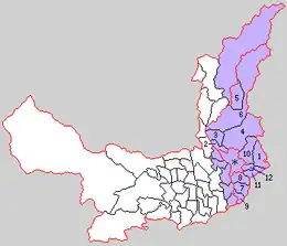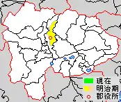Map showing original extent of Nishiyamanashi District in Yamanashi Prefecture: