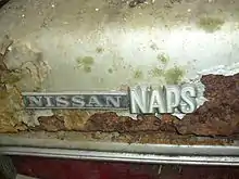 NAPS stands for Nissan Anti Pollution System[1] a moniker used in Japan to identify vehicles built with emission control technology. The technology was installed so that their vehicles would be in compliance with Japanese Government emission regulations passed in 1968. The term was first introduced in Japan, with an externally mounted badge on the trunk of vehicles equipped. Nissan's implementation began with the Y44E V8 engine installed in the Nissan President along with all vehicles installed with the Nissan L engine and the Nissan A engine in 1975. The initial introduction of Nissan's technology was the installation of an exhaust gas recirculation valve, followed with the addition of a catalytic converter and an air pump that added oxygen into the exhaust to promote higher temperatures in the catalytic converter, thus cleaning the exhaust further.