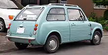Part of Nissan's "Pike" series, it was designed as a retro fashionable city car in the mold of the Be-1. It included external door hinges like the original 1960s Austin Mini which had become fashionable in Japan, 'flap-up' windows like those of a Citroën 2CV, and a split rear tailgate of the first British hatchback car the Austin A40 Farina Countryman.[6][7] The Be-1, Pao, Figaro, and S-Cargo were attempts to create cars with designs as desirable as those of Panasonic, Sony, and other personal electronics products.[8] The Pao's side strakes evoked the construction of earlier Woodie car body styles.