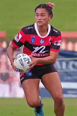 On 16 June 2018, she signed with the Sydney Roosters NRL Women's Premiership team.[9] In Round 1 of the 2018 NRL Women's season, she made her debut for the Roosters in their 4–10 loss to the New Zealand Warriors. On 30 September 2018, she started at hooker in the Roosters' 12–34 Grand Final loss to the Brisbane Broncos.[10]