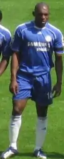 After an impressive FIFA Confederations Cup campaign with Cameroon, Chelsea paid Real Madrid £6.9 million for him in July 2003,[20] and he went on to have an excellent first season at Stamford Bridge. Although towards the end of his career at Chelsea, under José Mourinho he was played less regularly and when he was played he was put in his unpreferred position of right-back. Geremi, however, was held in high regard by Mourinho. During an interview, he said about Geremi, "In my team I love to have Geremi on the bench because he's a low-profile player who is ready to help, ready to fight for the team, ready to do the job I want him to do. If I need him to play right-back, he can play right-back. If I need him to play right-winger, he can play right-winger. If I need him to pick up a man and mark him out of the game, he does it." In his final year at Chelsea, Geremi scored the winning goal in a home match against West Ham United, a long-range free-kick. This turned out to be his last goal in a Chelsea shirt. His final appearance for Chelsea came against Liverpool in the Champions League semi-final second leg, which went to penalties.[21] Geremi came on as an extra-time substitute and went on to have his penalty saved by Liverpool goalkeeper Pepe Reina, and Chelsea ultimately lost.[22]