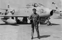 During rise in hostilities with India, 10 Sabres of the squadron were deployed at PAF Base Sargodha from Mauripur.[7] After Indian forces invaded Pakistan in an attempt to halt the Pakistani advance in the disputed Kashmir region, the No. 17 Squadron was assigned with Close Air Support missions in the Sialkot, Lahore and Khem Karan sectors while also performing air defence operations in the Sargodha District. On 19 September, Squadron Leader Azim Daudpota and his three wingmen (Flight Lieutenants SM Ahmed, Mujtaba & Saiful Azam) flying North American F-86 Sabres were performing air strikes on Indian army positions at the Phillora area when they were intercepted by 2 Indian Folland Gnats of the IAF's No. 9 Squadron. In the ensuing Dog fight, Flight Lieutenant Azam shot down one of the IAF Gnat while the second one managed to escape. In another strike mission, Squadron Leader Azim Daudpota with Flying Officer Qadir and two more F-86 pilots performed a strike mission on Indian army artillery batteries around the Jallo and Attari sectors which were bombing the Lahore District, the formation managed to destroy several artillery guns. This formation was highly commended by the Pakistan Army field commanders in the Lahore Front. After the war officially ended, the squadron had managed to destroy or damage 20-30 Tanks and 100-150 military vehicles. In addition to that, the squadron also claimed to have killed about 150-200 Indian troops in their Close Air Support missions. [2][3][8]