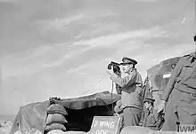 ![]() Lt.Col. A C Bosman, 'sweep leader' (Wing Commander Flying) of No. 7 SAAF Wing, signals by Aldis lamp to pilot coming in to land at Trigno landing ground, Italy. | |