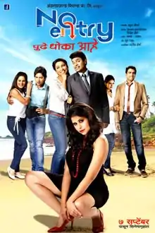 No Entry Pudhe Dhoka Aahe (transl. No entry, Danger ahead) is a 2012 Indian Marathi comedy film released on 7 September 2012.[1] The film was directed by Ankush Choudhary and produced by Prem Rajagopalan and Nikhil Saini. The film stars Ankush Choudhary, Bharat Jadhav, Aniket Vishwasrao, Kranti Redkar, Manwa Naik, Sai Lokur, Paddy Kambli and Sai Tamhankar. It is a remake of 2002 Tamil film Charlie Chaplin.