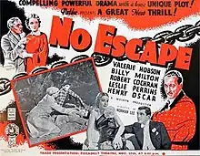 No Escape is a 1936 British thriller film directed by Norman Lee and starring Valerie Hobson, Leslie Perrins and Robert Cochran.[1] The screenplay concerns a man who attempts to hide his friend for a month.