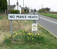 No Man's Heath is an area of North Warwickshire about 6 miles (9.7 km) northeast of Tamworth. It is near the boundaries of four English counties: Derbyshire, Leicestershire, Warwickshire and Staffordshire. Nearby in the late 19th century were Netherseal Colliery and Netherseal Hall. Today a small village exists here, also called No Man's Heath, which is the northernmost settlement in Warwickshire. The population of the village is included in Newton Regis. The county boundary which used to divide the village between Leicestershire and Warwickshire has been re-drawn to place the whole village in Warwickshire.[1]