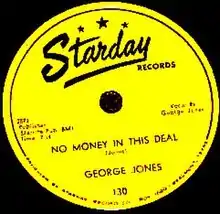 "No Money in This Deal" is the debut single by country musician George Jones, released on February 18, 1954 on Starday Records.
