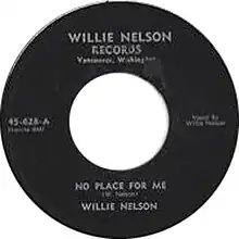 "No Place for Me" is the debut single of country singer-songwriter Willie Nelson. Nelson recorded the song while working as a disc jockey at KVAN in Vancouver, Washington, using a studio of the radio. Through a DJ he met during his time working on the radio in Texas, he contacted Starday Records, sending the tapes over to the label.