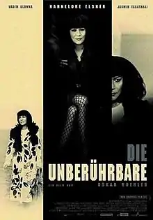 No Place to Go (German: Die Unberührbare) is a German black-and-white film released in April 2000, directed by Oskar Roehler, starring Hannelore Elsner, about a suicidal middle-aged writer travelling around Germany at a time of personal crisis.