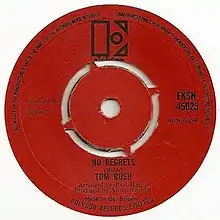 "No Regrets" is a song by folk and blues singer/songwriter Tom Rush. It is the final song on his 1968 album The Circle Game and was released as a single in the UK in January 1968 and in the US in April. It peaked at number 57 on the UK BMRB Breakers, an official extension of the UK Singles Chart.[1]