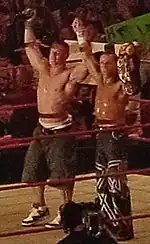 The next match was a Cruiserweight Open for the WWE Cruiserweight Championship.[18][22] The match began with Scotty 2 Hotty against Daivari; Hotty eliminated Daivari via pinfall after performing the Worm.[19] The Cruiserweight Champion, Gregory Helms, then entered the match and eliminated Hotty via pinfall after he performed a Double knee facebreaker on Hotty.[21] Funaki was the next participant to enter the match; however, he was eliminated via pinfall after Helms executed a Crossbody into a pin while holding onto Funaki's tights.[17] Shannon Moore was the fifth entrant into the gauntlet, but was eliminated via pinfall after Helms performed a Double knee facebreaker on him.[19] Jimmy Wang Yang, the sixth entrant, eliminated Helms via pinfall after performing a Hurricanrana pin.[17] Jamie Noble was the seventh entrant into the Gauntlet match, but he was eliminated via pinfall after Yang performed a moonsault into a pin.[20] The final entrant, Chavo Guerrero, pinned Yang after a frog splash, thus winning the title.[17][18][22]