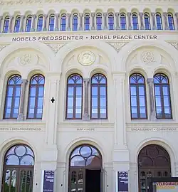The Nobel Peace Center (Norwegian: Nobels Fredssenter) in Oslo, Norway, is a showcase for the Nobel Peace Prize and the ideals it represents. The center is also an arena where culture and politics merge to promote involvement, debate and reflection around topics such as war, peace and conflict resolution.[1] The center is located in Oslo, Norway at the City Hall Square (Rådhusplassen).[2]
