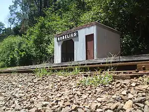 Nobelius Station is situated on the Puffing Billy Railway, and opened in 1927. It currently consists of a short platform with a "Mallee Shed"-type corrugated iron waiting shelter, which includes a small lockable room, although there was also a more substantial building in the past. Trains do not usually stop at the station, except by prior arrangement.