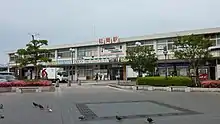 ![]() The present station building, which opened in August 2017, in December 2018 | |