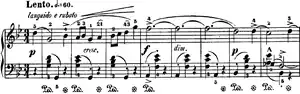 Chopin's sixth nocturne begins with a slow Lento tempo and is written in 3