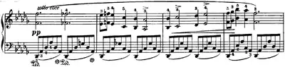 A sonorous foundation for the melodic line is provided by the widely spaced notes in the accompaniment, connected by the damper pedal. The waltz-like accompaniment gently emphasizes the 12