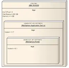 - An execution environment represents software containers (such as operating systems, JVM, servlet/EJB containers, application servers, portal servers, etc.) This is a node that offers an execution environment for specific types of components that are deployed on it in the form of deployable artifacts.[1]